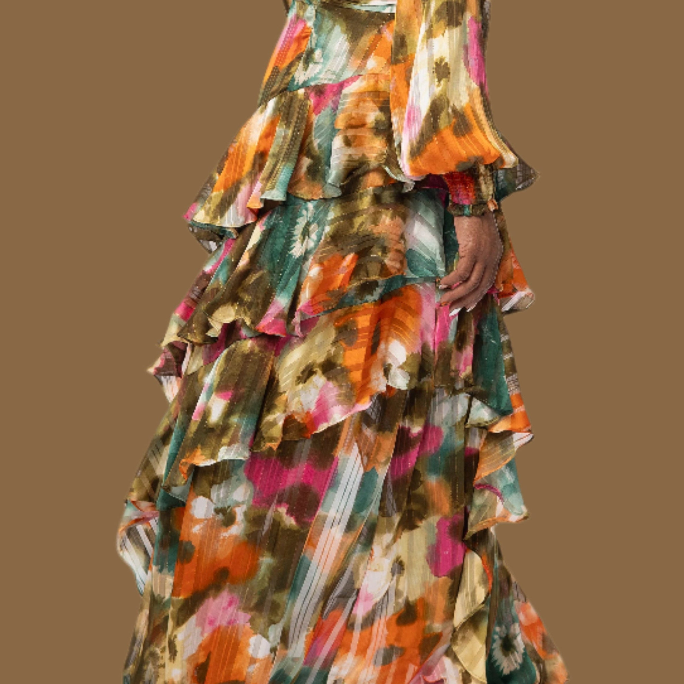 THE CARNIVAL CASCADE MAXI DRESS-A STUNNING, FULL LENGTH DRESS DESIGNED WITH VIBRANT COLORS, CASCADING LAYERS AND LIGHTWEIGHT FLOWY FABRIC. THE PERFECT DRESS FOR ANY WARM WEATHER OCCASION.